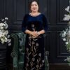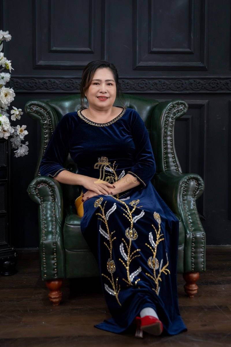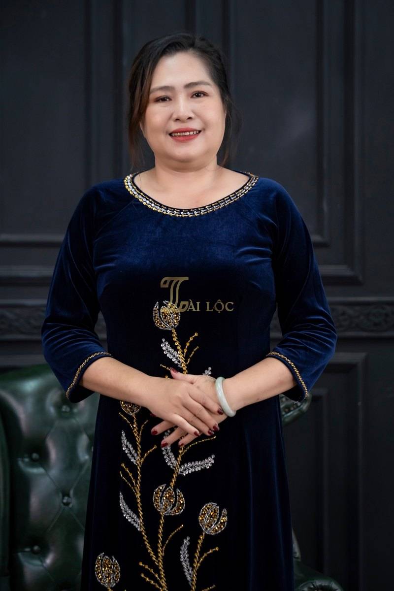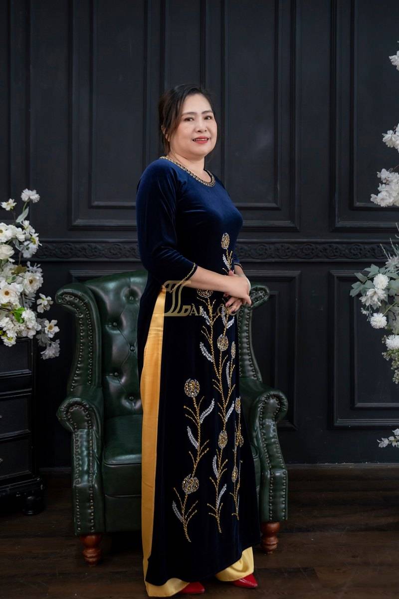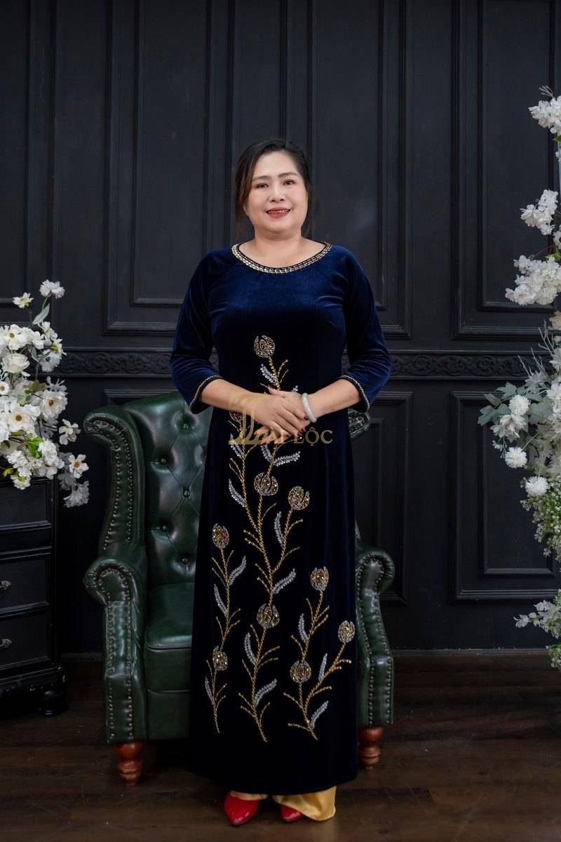 Áo dài bà sui là trang phục truyền thống không thể thiếu trong các dịp lễ, tết, đám cưới, hội họp. Và áo dài bà chị sui nhung xanh dương kết cườm có thể phối với nhiều phụ kiện khác nhau để tạo phong cách riêng.