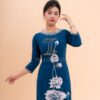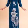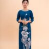 Khám phá về áo dài bà chị sui xanh coban lụa sen trắng đính cườm 3LX-BSX33