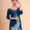 Đôi nét về áo dài bà chị sui xanh lụa chim công đối xứng đẹp L-BSX45