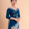 Áo Dài Bà Chị Sui Xanh Nhung Đính Cườm Bông Sen XL-BXN24