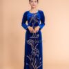 Khám phá về áo dài bà chị sui xanh nhung đính cườm bông sen XL-BXN24