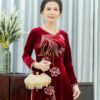 - Áo Dài Ngồi Sui Nhung Đỏ Đô BSĐN146