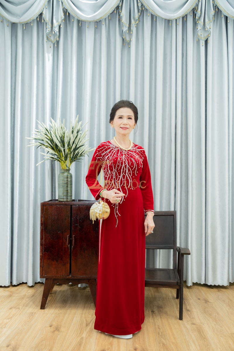 - Áo Dài Bà Sui Đổ Đô Cườm Kết Bông BSDN143