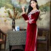 - Áo Dài Bà Sui Đỏ Nhung Sang Trọng Hoạ Tiết Đối Xứng BSDN16