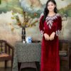 - Áo Dài Bà Sui Vải Nhung Đỏ Cổ Cườm Cao BSDN4