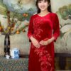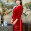 - Áo Dài Bà Sui Nhung Đỏ Ba Hoa BSDN53