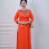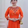 Chất liệu lụa cao cấp không chỉ mang lại cảm giác mềm mại, thoải mái mà còn tạo nên vẻ sang trọng, quý phái cho người mặc. Màu cam tươi sáng, rực rỡ, tạo sự trẻ trung, năng động và thu hút mọi ánh nhìn.Điểm nhấn đặc biệt của chiếc áo dài này là họa tiết kết lá cườm cổ. Hạt cườm lấp lánh được kết tỉ mẩn, tạo nên một tác phẩm nghệ thuật tinh xảo, làm tăng thêm sự quý phái cho người mặc.