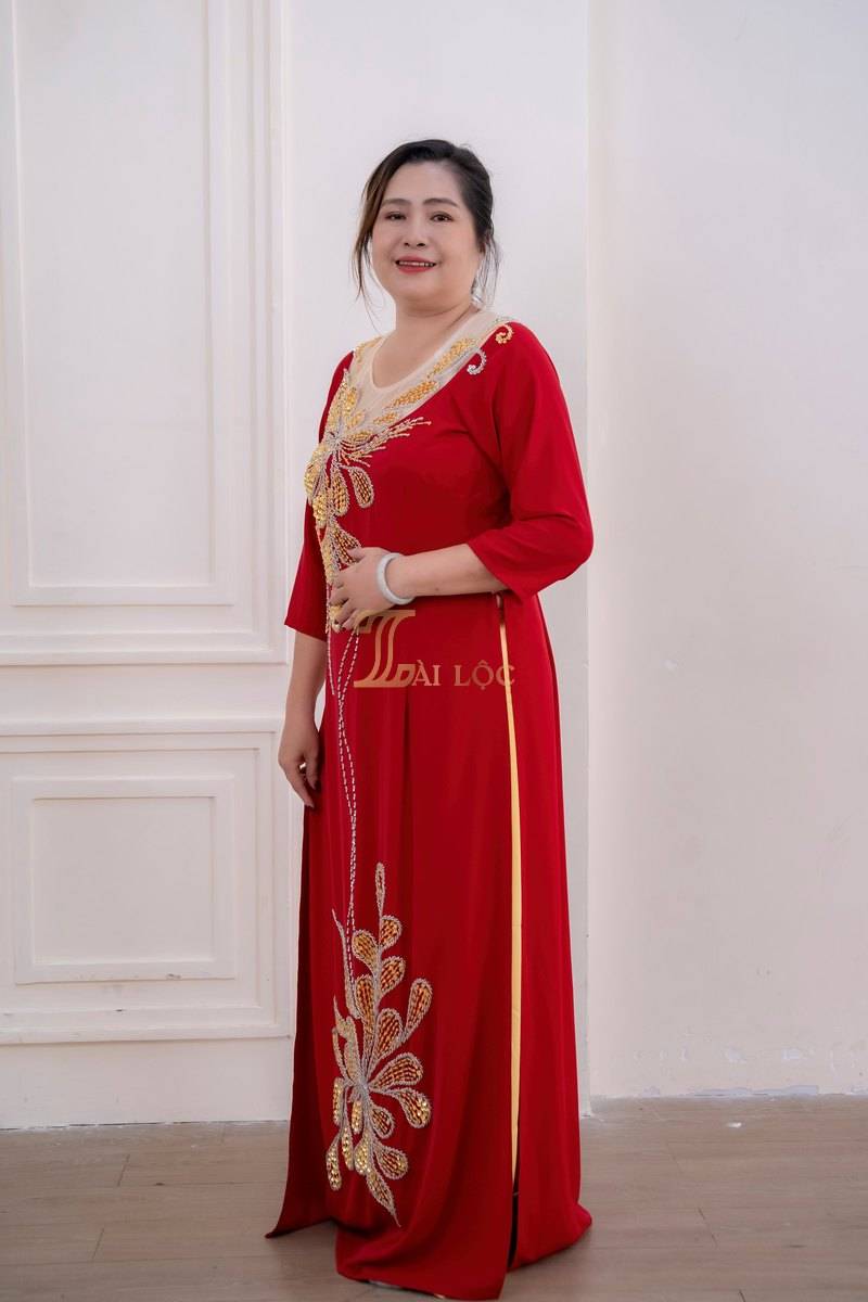 Áo dài được thiết kế bởi độc đáo và khác biệt. Lụa là chất liệu cao cấp, mềm mại và thoáng mát, mang lại cảm giác thoải mái khi mặc. Màu đỏ rực rỡ tôn lên vẻ đẹp của người mặc. Họa tiết đính cườm hoa lá tạo nên điểm nhấn độc đáo cho chiếc áo dài. Áo dài có thể được mặc trong nhiều dịp khác nhau như đám cưới, lễ tết, hội họp, chụp ảnh.