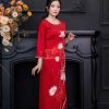 - Áo Dài Bà Sui Vải Nhung Đỏ Cổ Ren BSĐ111