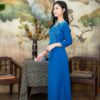 Áo Dài Bà Sui Lụa Xanh Dương Hoa Eo Bốn Tà BSXL60
