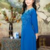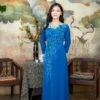 Áo Dài Bà Sui Lụa Xanh Dương Hoa Nổi BSXL52