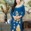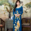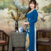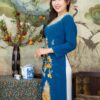 Áo Dài Bà Sui Vải Lụa Xanh Dương Hoa Lá BSX7
