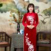 - Áo Dài Bà Sui Đỏ Nhung Sang Trọng Hoạ Tiết Đối Xứng BSDN16