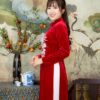 - Áo Dài Bà Sui Vải Nhung Đỏ Cổ Cườm Cao BSDN4
