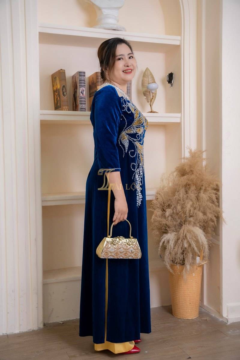 Áo dài cách tân cổ ren mang đến vẻ đẹp kết hợp giữa cổ điển và hiện đại. Cổ áo ren tinh tế, kết hợp hài hòa với phần thân áo nhung mềm mại, tạo nên sự sang trọng và quý phái.Nhung cao cấp không chỉ mang lại cảm giác ấm áp, thoải mái mà còn tôn lên vẻ đẹp quý phái của người mặc. Chất liệu này phù hợp với nhiều dịp khác nhau, từ lễ cưới, lễ hội đến các sự kiện trang trọng.Màu xanh biển tươi mới, trẻ trung và đầy sức sống, phù hợp với nhiều tông da, giúp bạn nổi bật và thu hút mọi ánh nhìn.