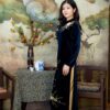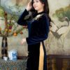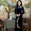 Áo Dài Bà Sui Nhung Xanh Đen Hoa Cúc BSND58