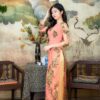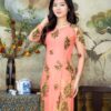 - Áo Dài Bà Sui Lụa Hồng Hoa Lá BSHL61
