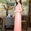 - Áo Dài Bà Sui Lụa Hồng Hoa Lá BSHL61