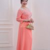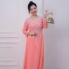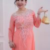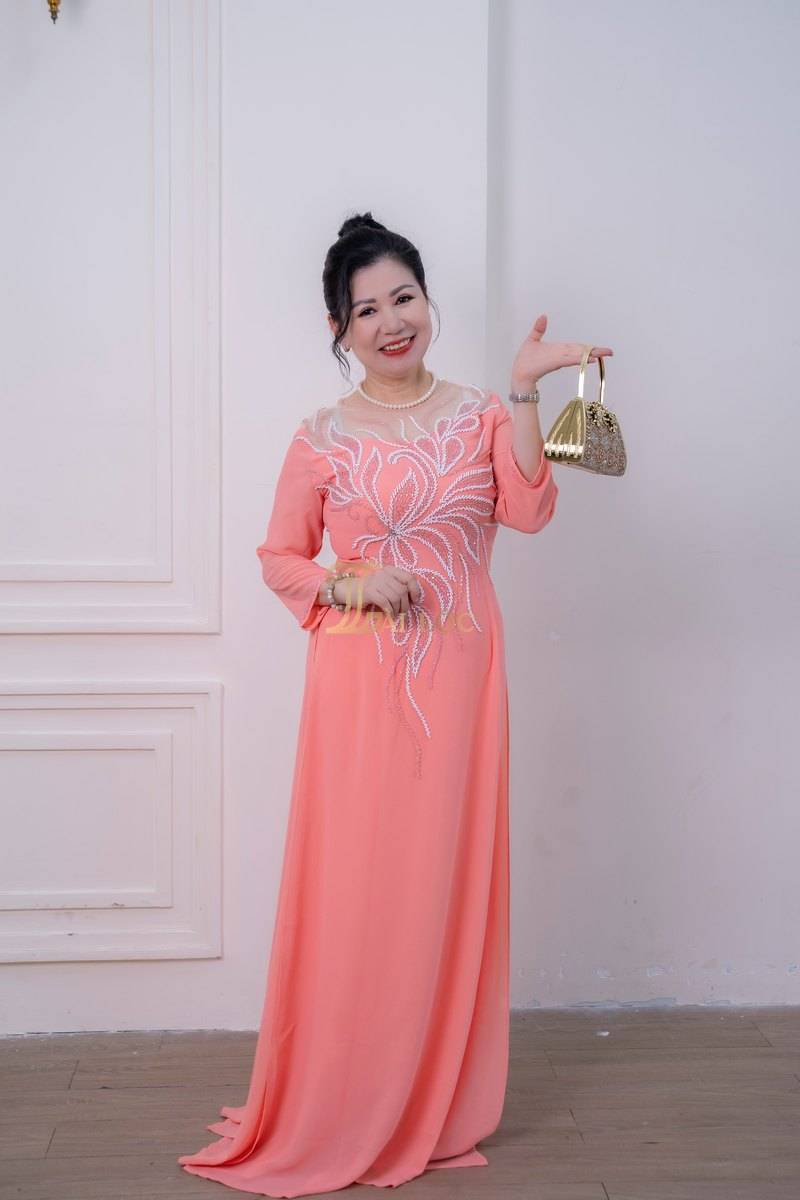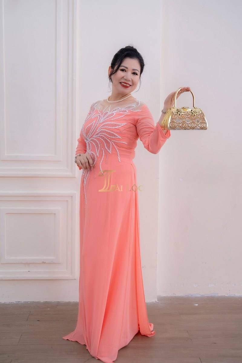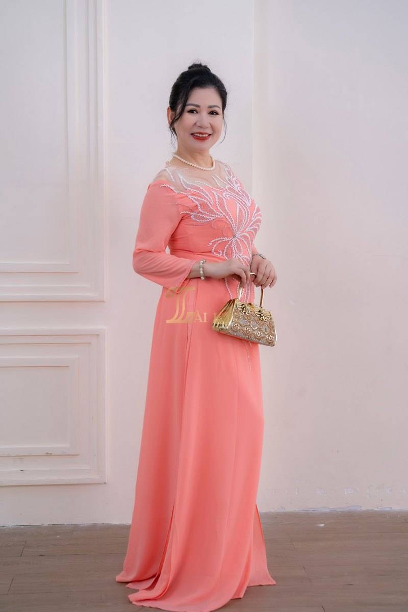 Đây là lựa chọn lý tưởng cho các dịp lễ hội, đám cưới hoặc các sự kiện quan trọng. Màu hồng cũng rất dễ phối hợp với phụ kiện và trang sức, giúp người mặc thêm phần rạng rỡ. Họa tiết kết cườm này không chỉ làm tăng vẻ đẹp của áo dài mà còn thể hiện sự chăm sóc tỉ mỉ trong từng chi tiết. Các họa tiết hoa lá được thêu tỉ mỉ và kết hợp với cườm tạo nên một điểm nhấn tinh tế, thu hút mọi ánh nhìn.