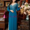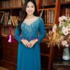 Áo Dài Bà Sui Vải Lụa Màu Xanh Cổ Tròn Kết Cườm BSX20