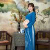 Áo Dài Bà Sui Vải Lụa Xanh Dương Hoa Lá BSX7