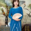 Áo Dài Bà Sui Lụa Xanh Dương Hoa Eo Bốn Tà BSXL60