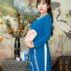Với kiểu dáng ôm nhẹ, áo dài làm nổi bật đường cong quyến rũ của phụ nữ, kết hợp cùng chất liệu vải lụa mềm mịn, mang lại cảm giác thoải mái khi mặc. Màu xanh dương nhã nhặn là gam màu chính trên chiếc áo dài, tạo nên vẻ thanh lịch và nhẹ nhàng. Cổ áo được viền bằng đường chỉ sen tinh tế và tay áo ôm sát tôn lên vẻ đẹp của bờ vai thon thả. Hoa lúa được thêu tỉ mỉ trên tà áo, tạo nên vẻ đẹp dịu dàng và nữ tính.