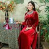 - Áo Dài Bà Sui Đỏ Nhung Sang Trọng Hoạ Tiết Đối Xứng BSDN16