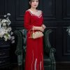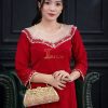 - Áo Dài Bà Sui Lụa Đỏ Cổ Ren Kết Cườm BSĐ104