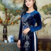 Áo Dài Bà Sui Vải Nhung Xanh Dương Cườm Hoa BSXN8 với kiểu dáng độc đáo và ấn tượng dành cho những người phụ nữ yêu thích vẻ đẹp sang trọng và quý phái.