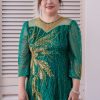 Áo Dài Bà Sui Vải Ren Xanh Bông Lúa BSXR73