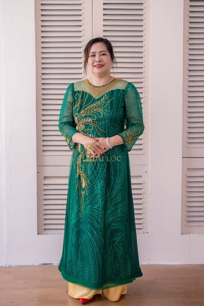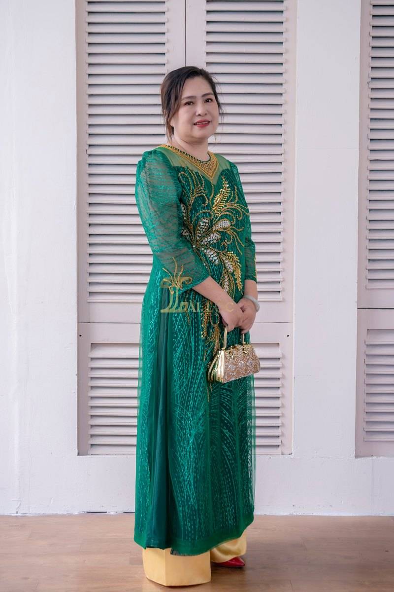 Thông tin chi tiết Áo Dài Bà Sui Vải Ren Xanh Bông Lúa BSXR73