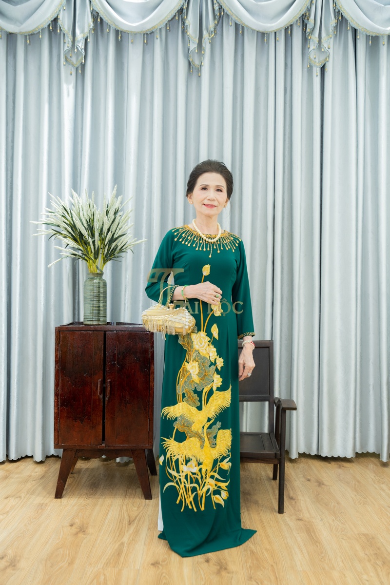 - Áo Dài Bà Sui Xanh Lá Công Trắng BSXL128