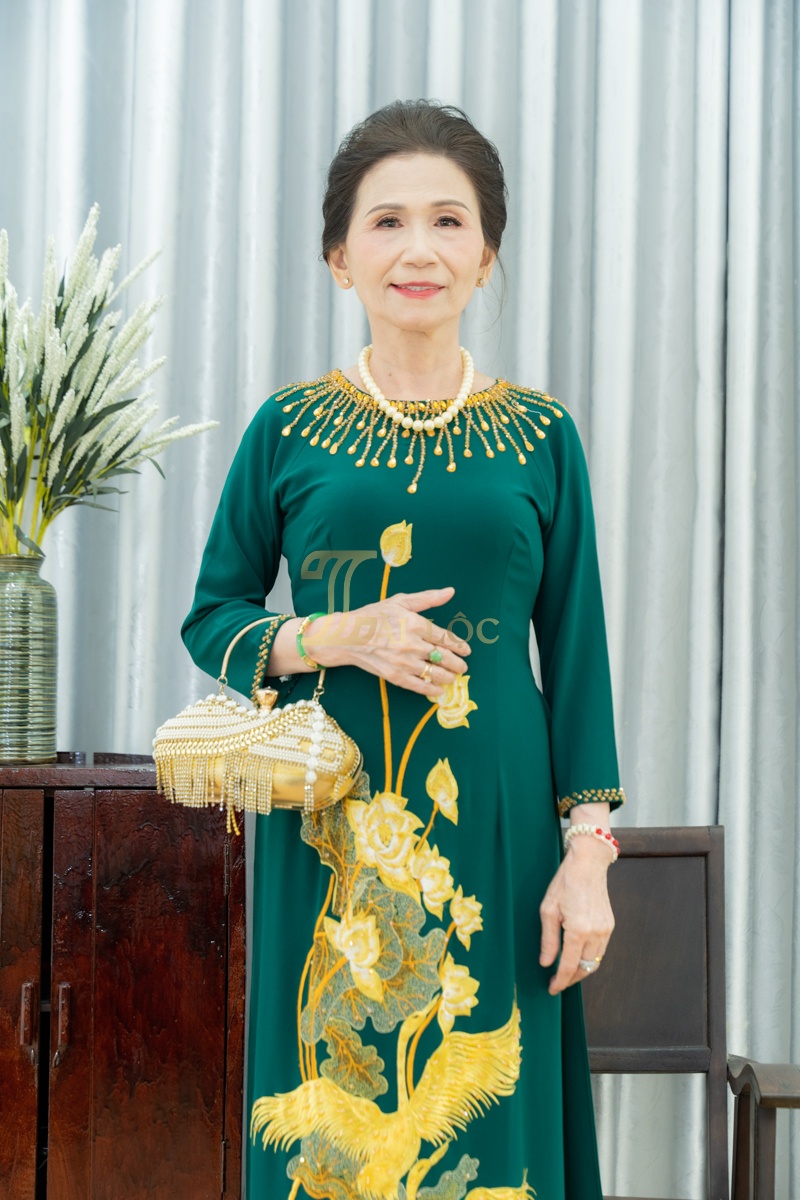 Màu xanh lá của Áo Dài Bà Sui Xanh Lá Hạt Vàng BSXL124 giống như sắc màu của những tán cây rừng sâu, vừa mộc mạc, vừa đầy sức sống. Màu sắc này không chỉ thể hiện sự tươi mới mà còn tượng trưng cho sự vững bền và hạnh phúc dài lâu. Áo dài được làm từ chất liệu lụa mềm mại và mịn màng, tạo nên cảm giác thoải mái cho người mặc. Điểm nhấn đặc biệt của Áo Dài Bà Sui Xanh Lá Hạt Vàng BSXL124 chính là họa tiết bông sen và chim hạc màu vàng. Bông sen, biểu tượng của sự thanh khiết và cao quý, tượng trưng cho tâm hồn trong sáng và sự vươn lên giữa những khó khăn của người phụ nữ Việt Nam. Chim hạc, loài chim đại diện cho sự trường thọ và bình an, lại mang ý nghĩa của sự gắn bó và yêu thương. Từng chi tiết bông sen và chim hạc được thêu tỉ mỉ trên tà áo, như đang nhảy múa và hòa quyện vào nhau, tạo nên bức tranh hài hòa, đẹp mắt.