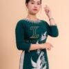 Áo Dài Bà Chị Sui Xanh Lá Lụa Thêu Mai Vàng Cườm Cổ XL-BSXL69