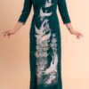 Áo Dài Bà Sui Xanh Lá Lụa Thêu Cặp Công Vàng L-BSX37
