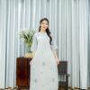 Áo Dài Bê Mâm Cưới Xanh Nơ Cúc Nhí BQXCN39 mang kiểu dáng cách tân với nét hiện đại nhưng vẫn giữ lại phần cốt lõi của áo dài truyền thống. Chiếc áo cổ tròn ôm nhẹ nhàng quanh cổ, tôn lên vẻ mềm mại, dịu dàng mà không quá cầu kỳ. Phần tay áo ren lửng mang đến sự thoáng mát và thoải mái cho người mặc, vừa giữ nét truyền thống, vừa phù hợp với phong cách hiện đại.