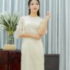 - Áo Dài Bê Quả Kem Cúc Trắng BQKC31
