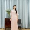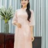 - Áo Dài Bê Quả Hồng Tay Bèo Hoa Đào Trắng BQHĐT33