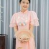 - Áo Dài Bưng Quả Hồng Trơn Tay Bèo