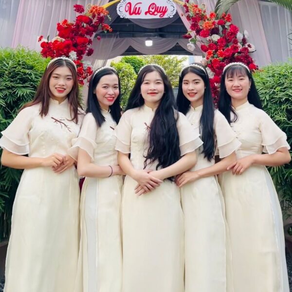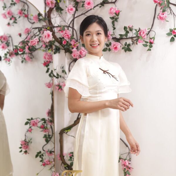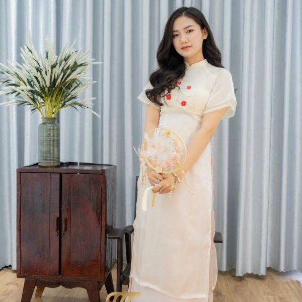 - Áo Dài Bưng Quả Kem Tay Phồng Ngắn