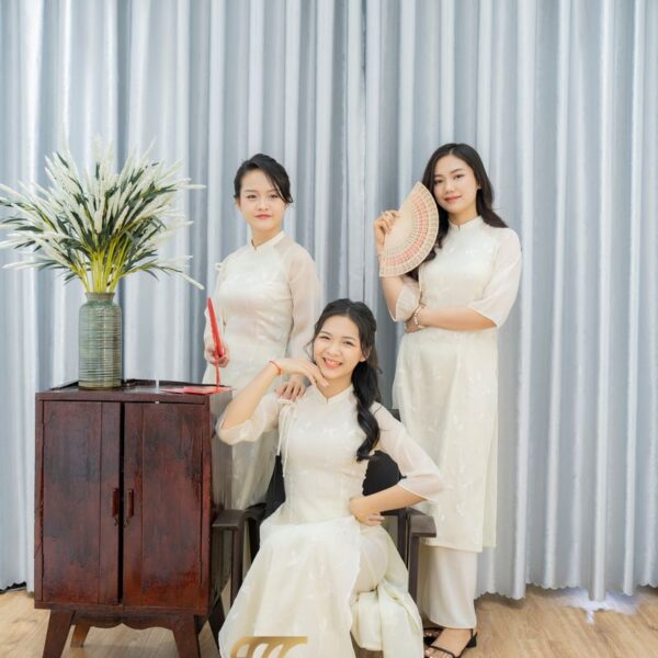- Áo Dài Bưng Quả Kem Trơn Tay Bèo