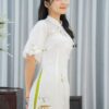 Áo dài bưng quả trắng hoa nhài là một trang phục truyền thống của Việt Nam, thường được sử dụng trong các đám cưới hoặc sự kiện quan trọng. Áo dài này được thiết kế với màu trắng tinh khôi tượng trưng cho sự trong sáng, thanh khiết của người con gái. Trên nền vải trắng ấy, những bông hoa nhài xanh nhỏ xinh được thêu tỉ mỉ, tạo nên một bức tranh dịu dàng.