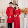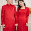 Trong nghi lễ hôn nhân thiêng liêng, cô dâu và chú rể thường khoác lên mình những bộ trang phục cưới lộng lẫy, truyền thống. Đối với các cặp đôi ưa chuộng phong cách cổ điển, mẫu áo dài cặp đám cưới cô dâu chú rể đỏ đô hoa cổ vuông là một lựa chọn không thể bỏ qua.