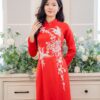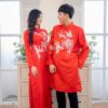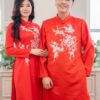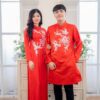 Áo dài với chất liệu lụa đỏ cao cấp, mềm mại, mịn màng, co giãn nhẹ. Chất liệu thoáng mát, thấm hút mồ hôi tốt, giúp người mặc cảm thấy thoải mái trong suốt ngày dài. Áo dài có màu đỏ và màu đỏ cũng là màu sắc mang lại may mắn, tài lộc cho cuộc sống hôn nhân của cặp đôi.