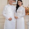 Áo Dài Cặp Đám Cưới Cô Dâu Chú Rể Lụa Trắng Hoa Chéo – CDCRT21 được lấy cảm hứng từ truyền thống tinh túy của dân tộc Việt. Áo dài sử dụng chất liệu vải lụa trắng cao cấp, mềm mại và uyển chuyển, tạo nên vẻ đẹp nền nã và thanh lịch cho cô dâu chú rể trong ngày trọng đại.
