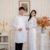 Áo dài của chú rể cũng được thiết kế với kiểu dáng truyền thống, với cổ đứng và tay áo dài,rộng mang lại vẻ chỉnh tề và nam tính. Tương tự như áo dài của cô dâu, trên tà áo cũng được thêu họa tiết hoa chéo tinh xảo, tạo nên sự hài hòa và đồng điệu trong trang phục của cặp đôi. Bộ áo dài cưới cặp đôi này không chỉ là trang phục truyền thống tôn vinh nét đẹp văn hóa Việt, mà còn ẩn chứa những ý nghĩa tốt đẹp về tình yêu, sự gắn kết và hạnh phúc của cô dâu chú rể trong cuộc sống hôn nhân.