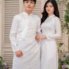 Áo Dài Cặp Đám Cưới Cô Dâu Chú Rể Lụa Trắng Hoa Chéo – CDCRT21