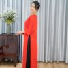 Áo dài mang phong cách thanh lịch và sang trọng. Màu đỏ rực rỡ tượng trưng cho sự may mắn, tài lộc và niềm vui. Chiếc áo dài này phù hợp để mặc trong những dịp đặc biệt như lễ Tết, đám cưới, hay các sự kiện quan trọng khác.