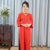 - Áo Dài Bà Sui Vải Lụa Đỏ Cổ Ren Hoa BSDL71